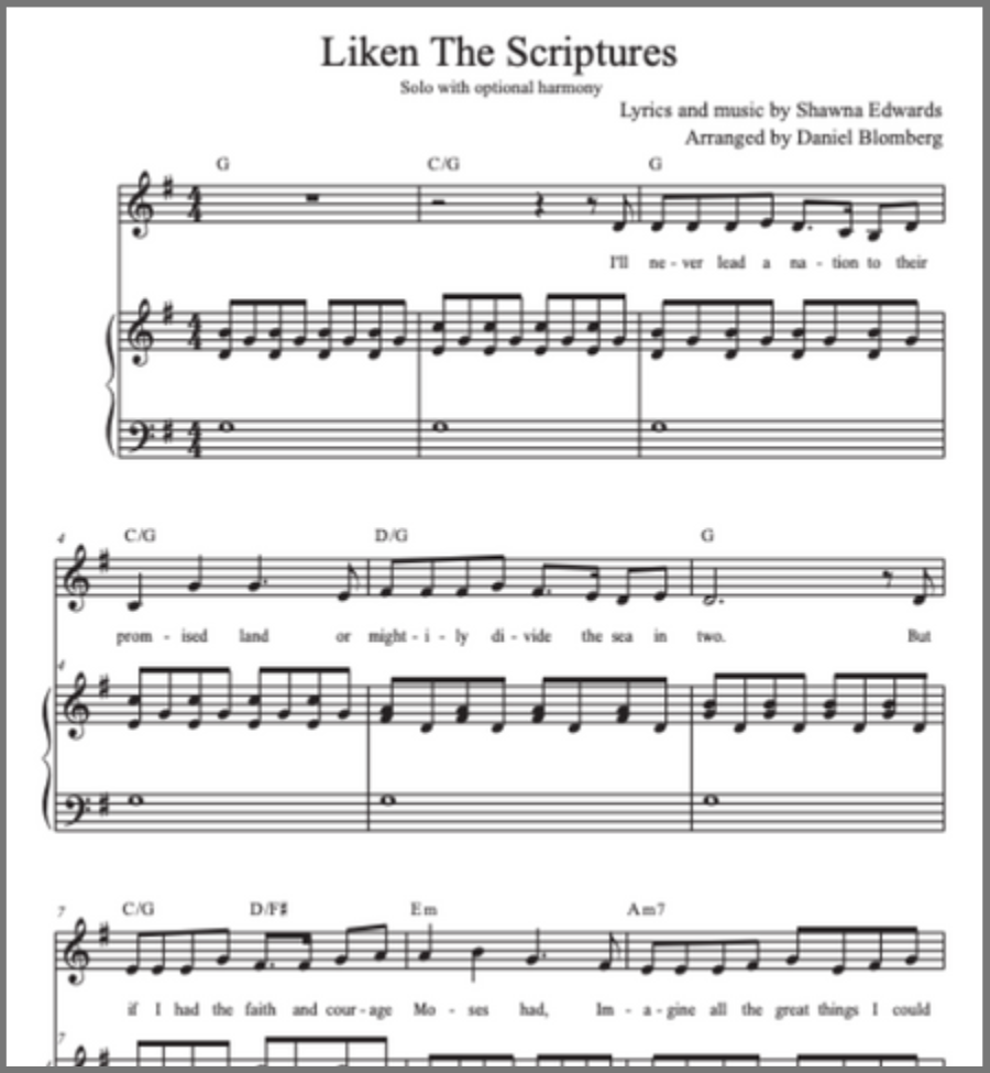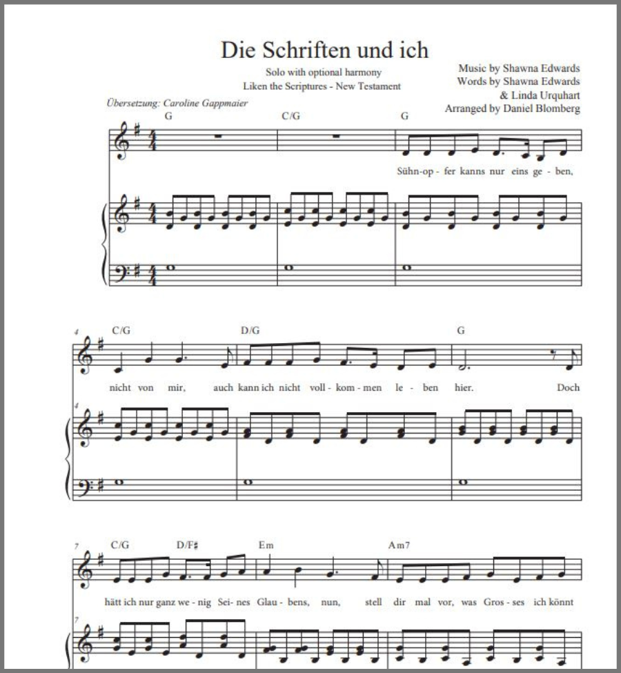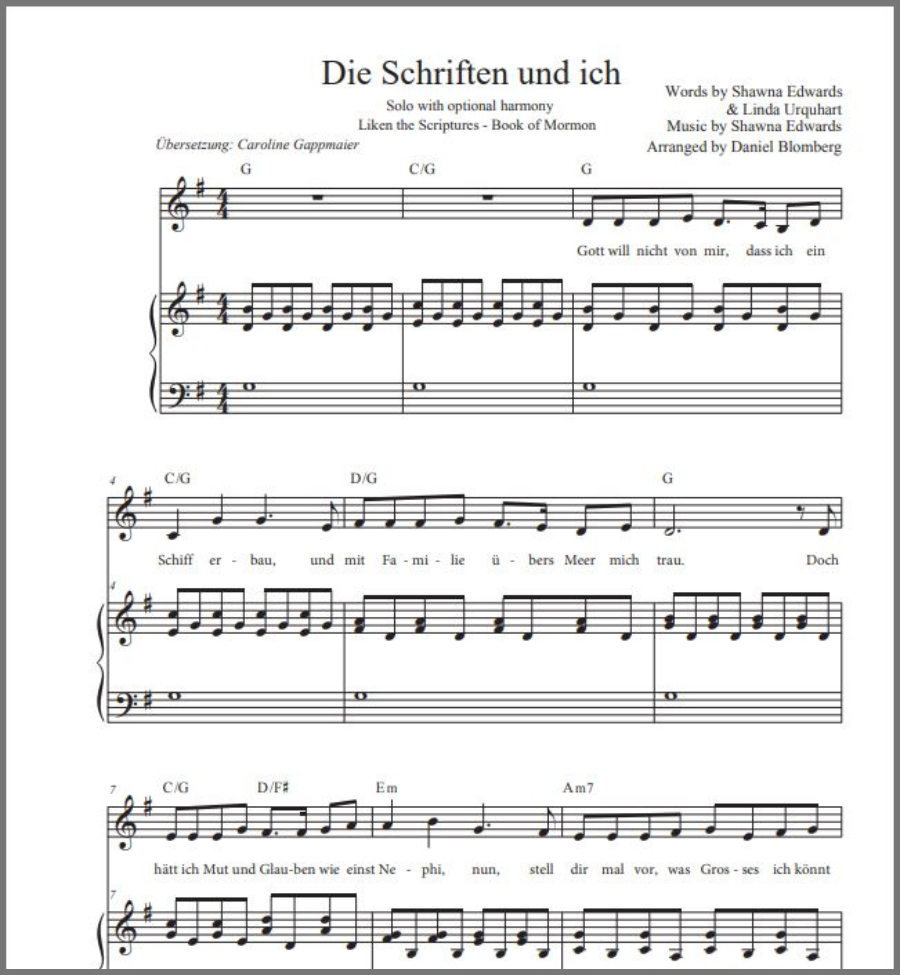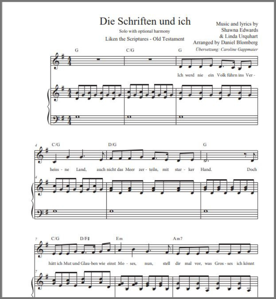 Sheet music for Liken the Scriptures is now available in German.
