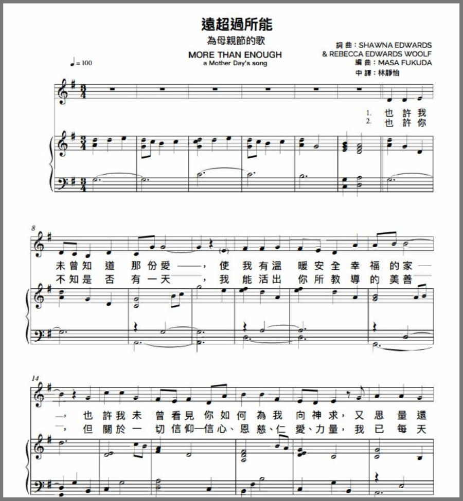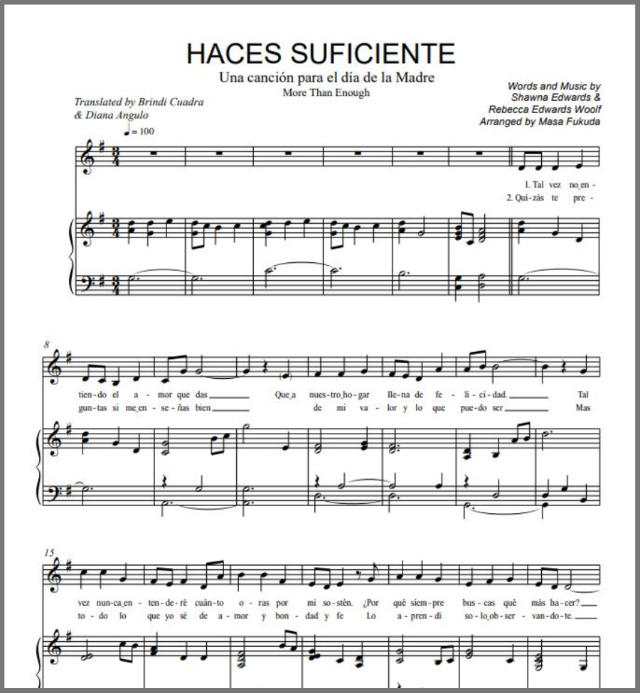 Sheet music for More Than Enough is now available in Spanish, German, and Mandarin.