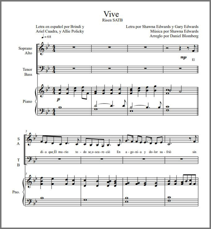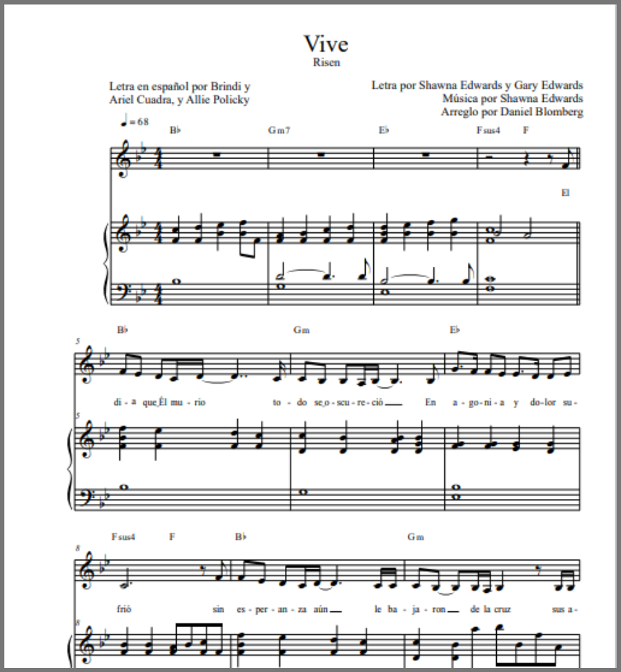 Sheet music for Risen is now available in Spanish and Portuguese.
